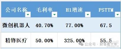 我们用实时PS估算,微创机器人67.5倍,精锋医疗55.5倍