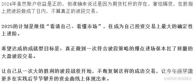 去年年终总结说收益虽然是正的,但因为害怕隔夜把波段做成了日内,今年有所进步,两笔大赢单都是把计划的波段做成了隔夜短线。