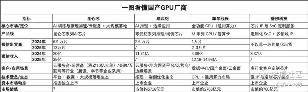 华尔街已经在转变观念,高盛参考寒武纪当前市销率,给出百度持有的昆仑芯股权价值30亿至110亿美元的估值区间;中银国际更是直接说,昆仑芯的估值应该在港股GPU公司中“处于头部”。摩根大通预测昆仑芯收入将从2025年飙升至2026年83亿元——这个增速如果实现,估值空间还很大。