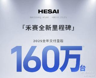 禾赛全新里程碑 2025 全年交付量超 160 万台