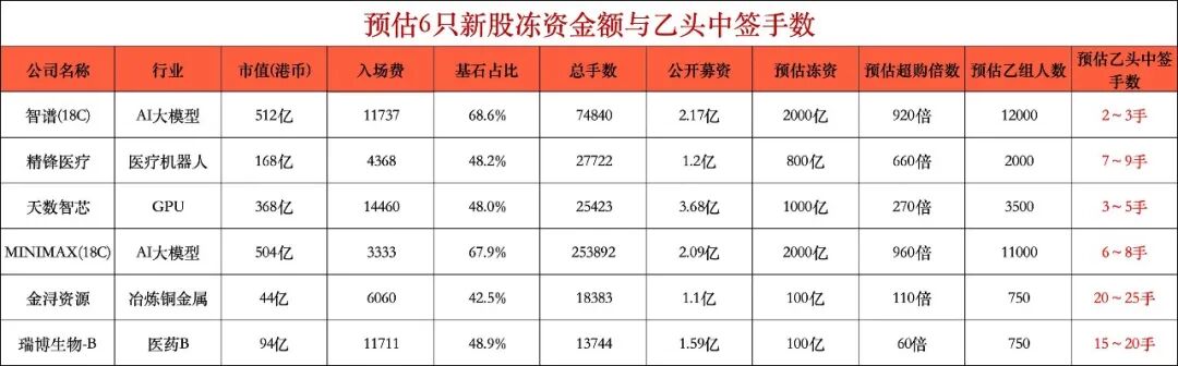 在我心目中6只新的申购优先排名顺序是:MINIMAX>智谱>天数智芯>精锋医疗>金浔资源>瑞博生物