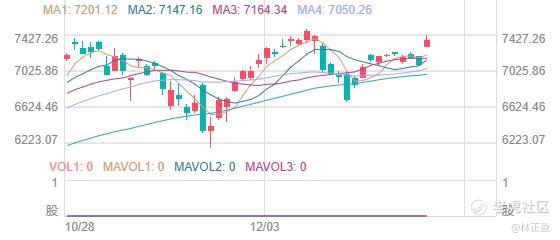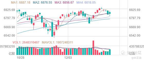 $标普500指数 (.SPX.US)$ 同样高开低走,到最终收涨,也算是开门红了。不过目前还是处于新高后的调整阶段,阻力位还是7000点整数关口。