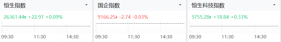 1月5日,港股三大指数开盘涨跌不一,恒指涨0.09%,国指低开0.03%,恒生科技指数涨0.33%。