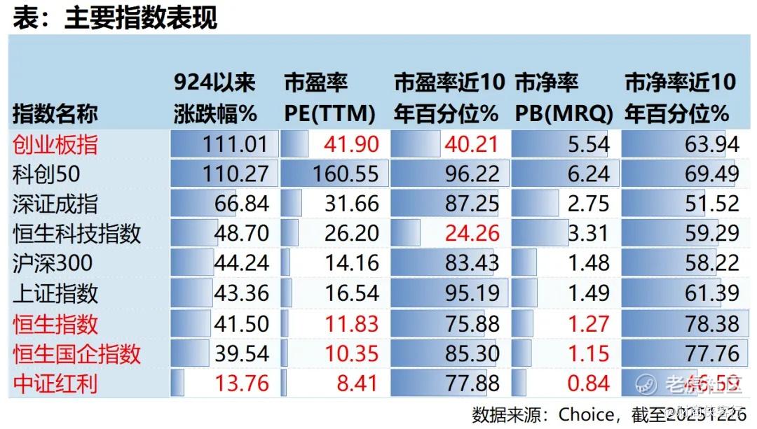 1️⃣ 涨幅分化。自去年“924”低点以来,创业板指、科创50涨幅翻倍,相比之下,中证红利仅上涨了13.76%,2025年甚至还是下跌的。说明市场并非普涨,而是“局部牛市”。
