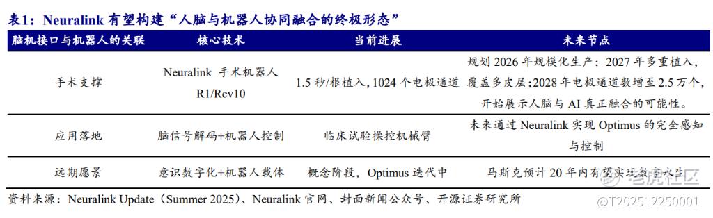开源证券在最新的研报中指出,Neuralink的规模化生产预期与自动化手术方案具备双重里程碑意义。这不仅标志着脑机接口正从“医疗试验工具”向“可普及产品”跨越,也为未来与特斯拉Optimus人形机器人的协同应用奠定基础。