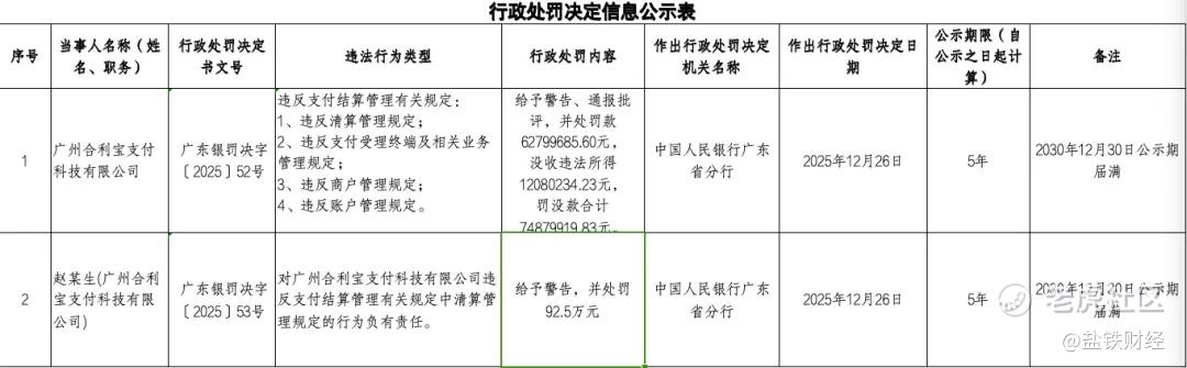 其中最大的一笔罚单,也是2025年支付行业的最大一笔罚单,落在了合利宝支付身上。
