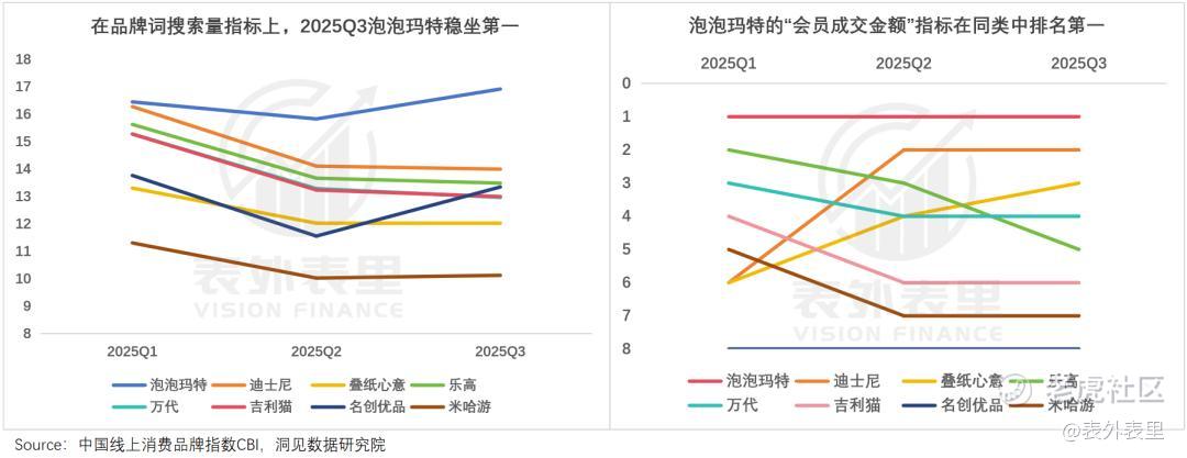 进一步拆解泡泡玛特的细节指标可以看到,其知名度(如品牌词搜索量)、忠诚度(如会员成交金额)等指标排名仍领先。可见,大家只是少买Labubu了,但并不少买泡泡玛特,品牌势能依然抗打。