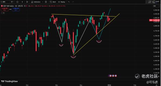 SPX的2条黄色线也是一个“挤压”形态,K线最好别向下,哈哈