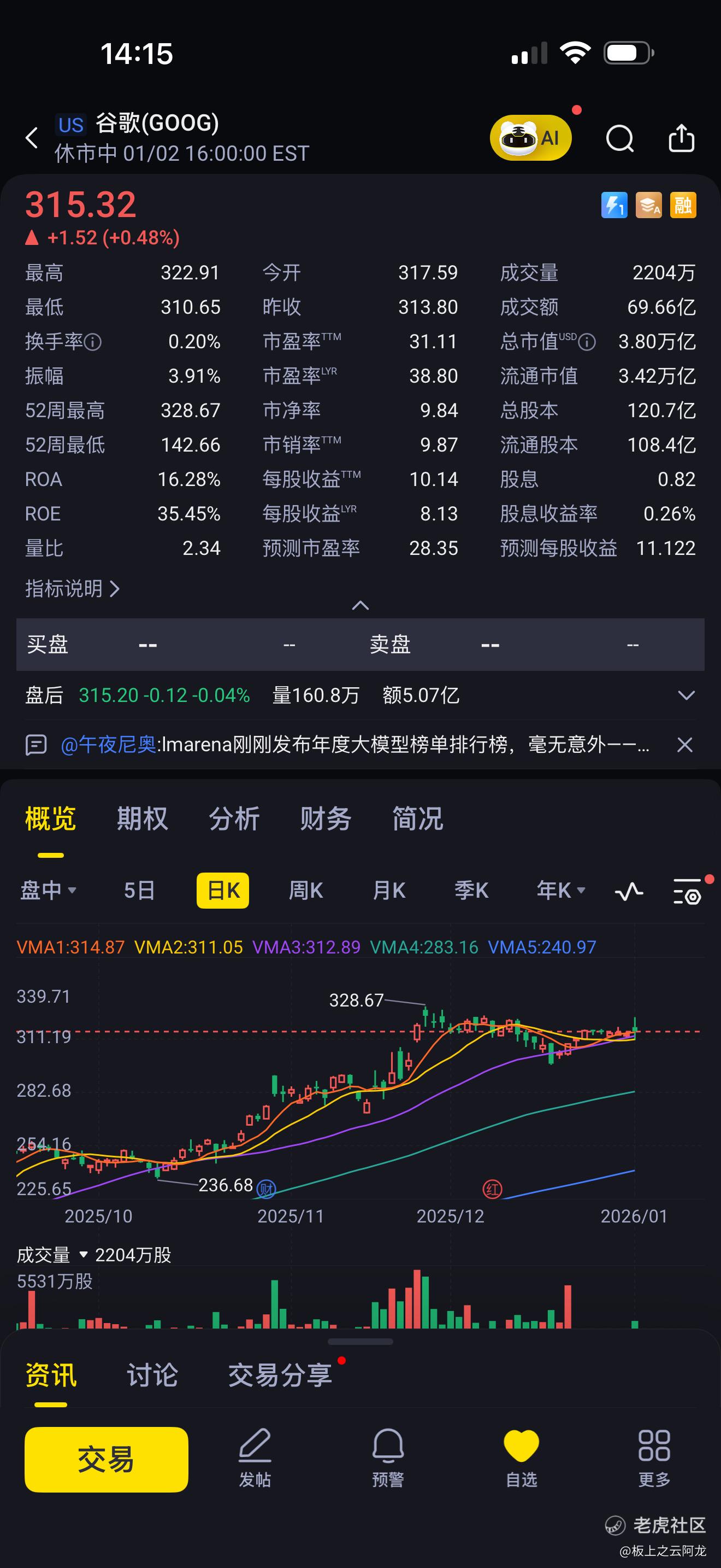核心财务数据与估值水平$谷歌A(GOOGL)$
