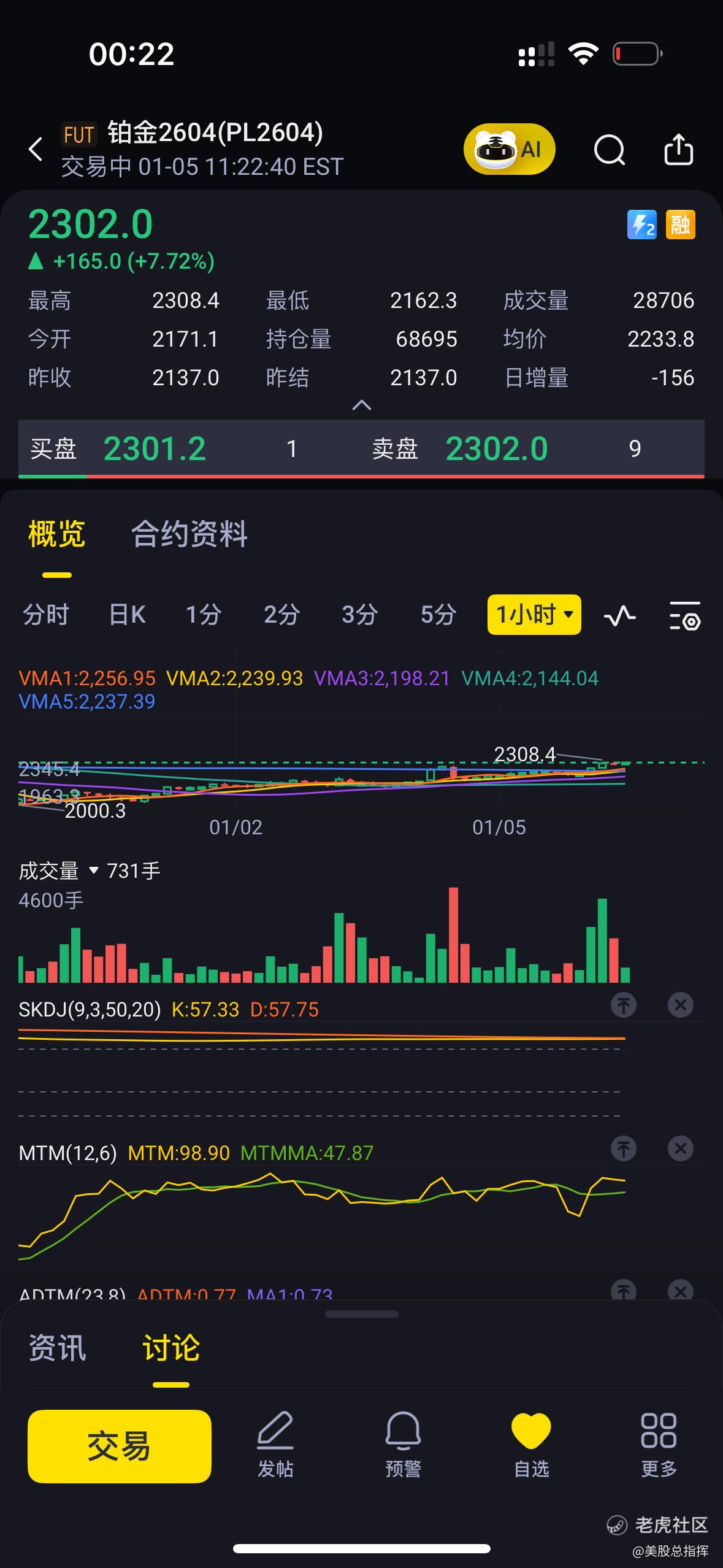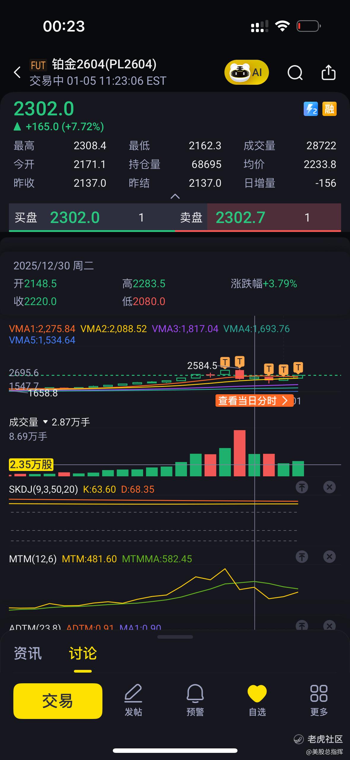 $铂金2604(PL2604)$ 就现在这个点位 不要轻易去做空,因为目前没有迹象表明要跌下去,无论从五分钟,一小时 还是日线去看!不是说长得高了就一定要跌!这是最基本的交易常识!管住手 你就赢了一大半!