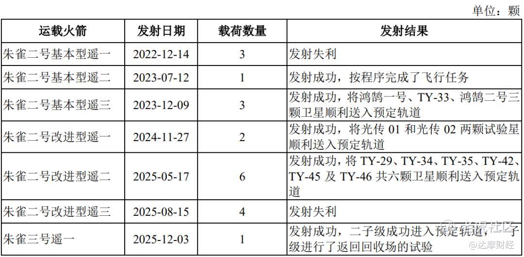 自2022年以来,蓝箭航天合计进行了7次发射任务,其中失利2次,成功5次。去年12月,朱雀三号遥一运载火箭完成首飞,火箭二级进入预定轨道,火箭一级进行了返回回收场的试验。朱雀三号也成为国内首枚发射且入轨成功的可重复使用运载火箭。