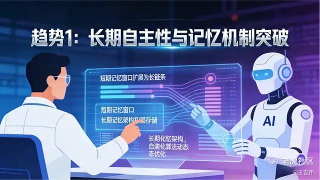 2026年AI Agent在长期自主性方面将实现关键突破,核心体现在记忆机制的根本性改进。Anthropic等公司通过优化记忆机制与Context压缩算法,推动Agent实现数周级持续工作,保持任务目标不偏离、关键信息不遗忘。模型上下文处理能力提升10倍以上,支持处理完整软件项目开发、跨部门业务流程等超大规模任务。