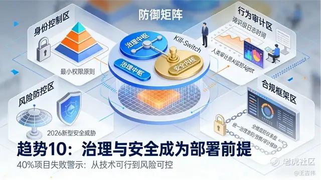 因此,更多企业将在2026年不得不构建完整的AI安全治理体系、权限/身份控制与监控机制。这意味着,Agent安全、行为异常检测、Kill-Switch机制等将成为技术栈必备能力。