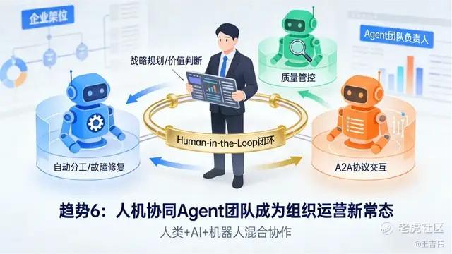2026年,每个员工都将成为智能体管理者,工作重心从执行转向战略方向和结果监督。企业组织架构将进行调整,出现Agent团队负责人等新岗位,负责Agent资源调配、任务分配和质量管控。