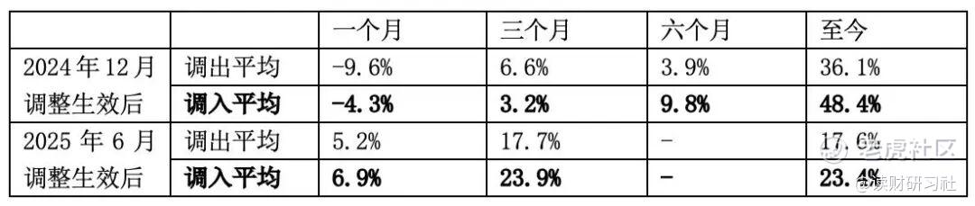 收益数据印证了这种优势:从收益表现来看,2025年6月的调整生效后一个月、三个月及至今,调入组的平均收益均优于调出组,证明了调整机制的有效性。