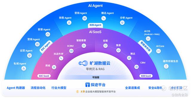 作为专注于数字生产力的大模型智能体平台,探迹科技已构建起覆盖AI Agent全链路的自主技术体系。公司自主研发的“太擎”企业级大模型智能体开发平台与“旷湖”数据云底座,形成了从智能体开发、数据治理到场景应用的完整闭环,为商业化落地提供了坚实支撑。