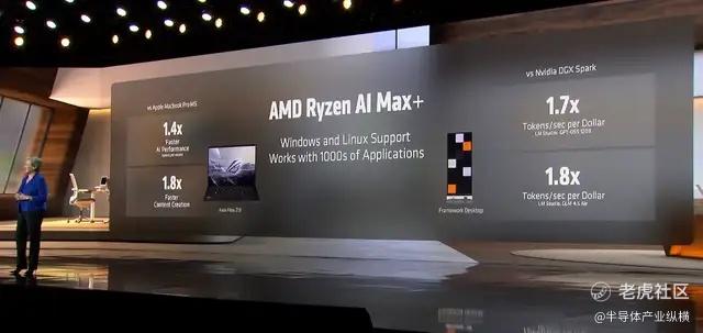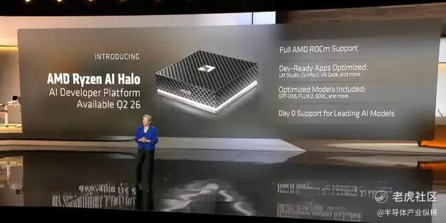 同时,苏姿丰发布了AMD Ryzen AI Halo,全新的 AMD 品牌迷你 PC。能够在本地运行参数高达2000亿的模型,搭载旗舰级Ryzen AI Max处理器和128GB高速统一内存,最高可达 60 TFLOPS 的 AMD RDNA 3.5 图形性能,并支持 Windows 和 Linux 系统。预装了领先的开源开发工具,并且开箱即可运行数百种模型。AMD Ryzen AI Halo将于今年第二季度上市。