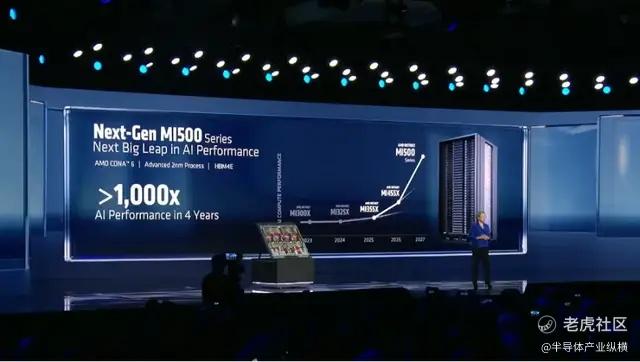 AMD计划在2027年推出MI500,该系列处理器基于CDNA 6架构,采用HBM4E显存,并采用2纳米制程工艺。过去四年中,其人工智能性能将提升1000倍,AMD正在按计划实现1000倍的目标。