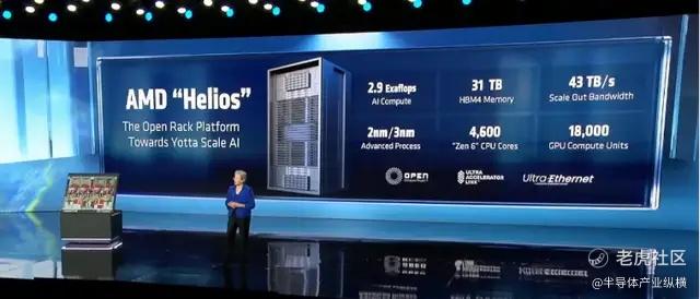 苏姿丰从云计算开始谈起。她表示,如今大多数人都是在云端体验人工智能。真正的挑战在于如何将人工智能扩展到 Yotta 级别。这就是 AMD 打造其下一代平台 Helios 的原因。