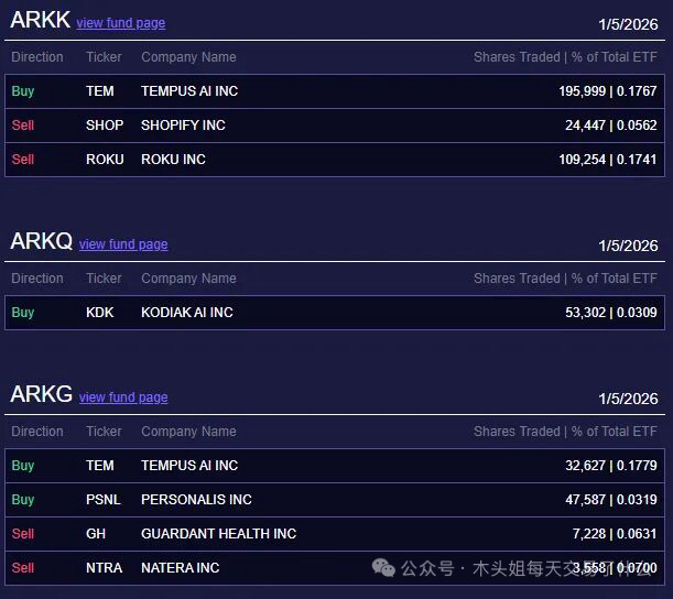 木头姐今天买入1400万美元TEM,12月尾连跌几天,在1月迎来反弹,木头姐继续大手笔买入,有跟买的朋友吗?买入55万美元KDK、37万美元PSNL。