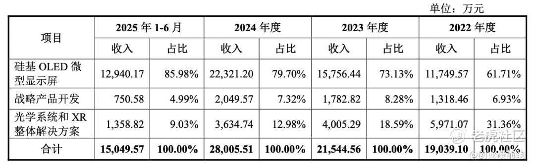 其中,硅基OLED微型显示屏业务的营收占比在2025年上半年突破80%,达到85.98%。其他两项业务暂时难以承担第二增长曲线的重任。