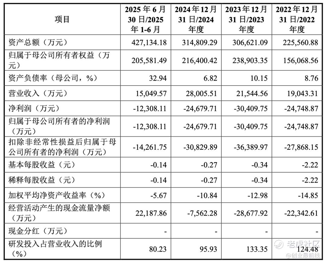 报告期内,视涯科技的研发投入分别高达2.37亿元、2.87亿元、2.69亿元及1.21亿元,占营业收入的比例分别为124.48%、133.35%、95.93%和80.23%。
