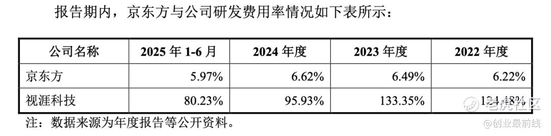 而视涯科技的同行业可比公司京东方,同期的研发费用率为个位数。