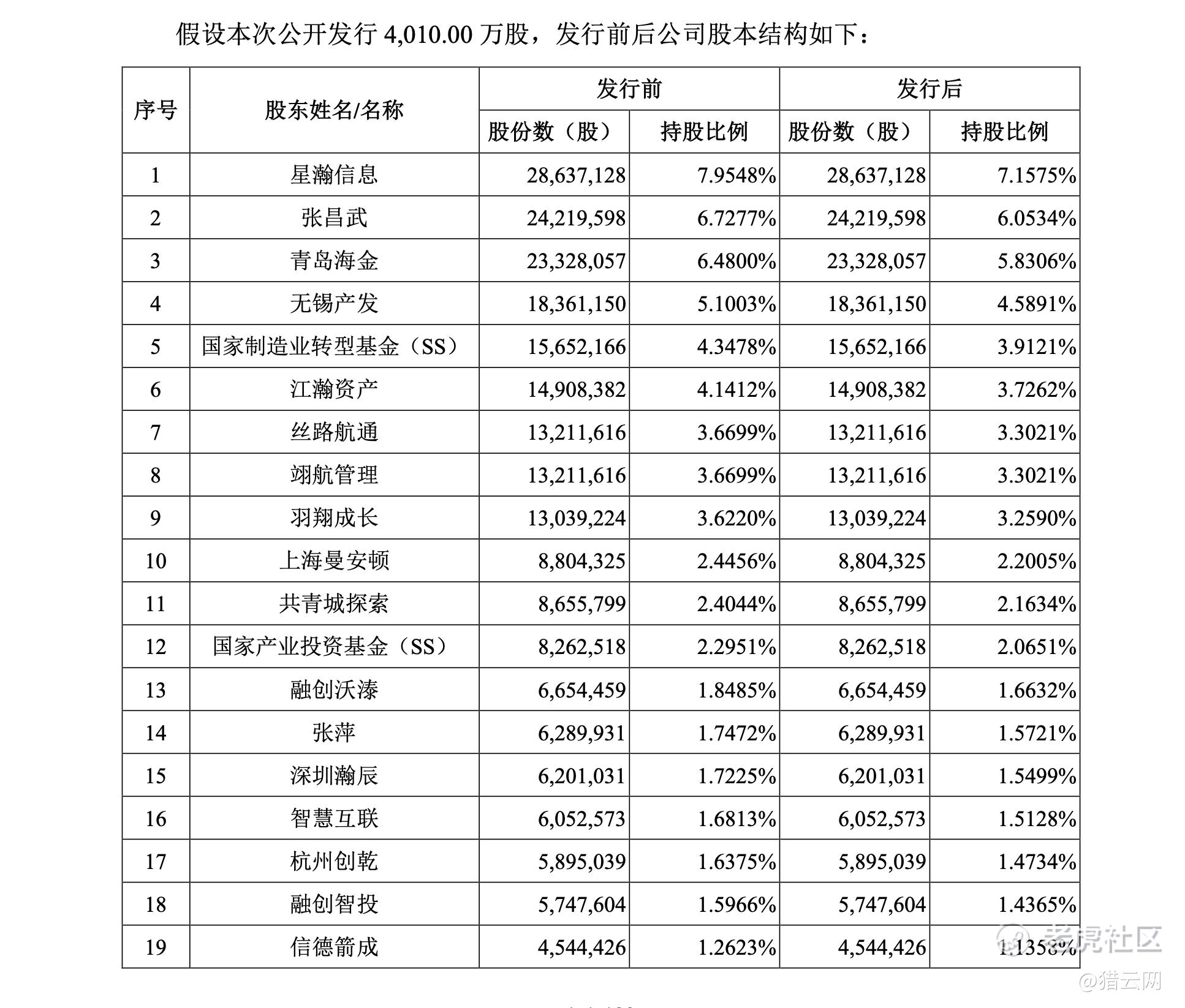 IPO后,张昌武直接持有蓝箭航天6.0534%股份;星瀚信息持股7.1575%;丝路航通、翊航管理均持股3.3021%;启宇航科持股1.0401%;航研管理持股0.2648%。