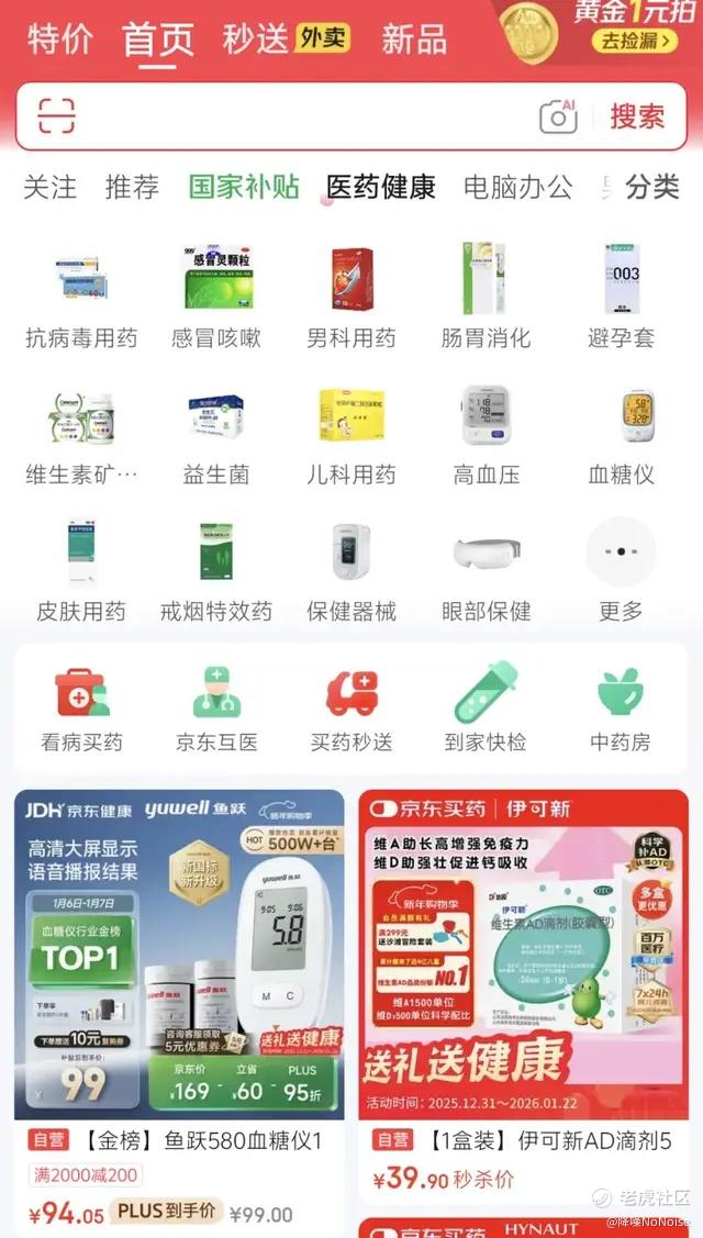 ▲医疗健康被放在京东App首页的显要位置