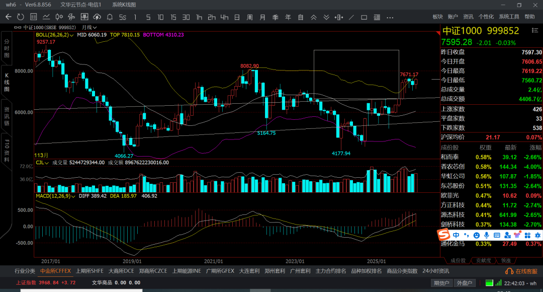 技术面来说更加的明确了,目前中证1000卡在8k压力的情况了,后续破了就是500-1000的看待即可,更多的是二三百点的墨迹了,上方核心压力是9k和1w,在多就看不懂了,下方是6k+-500的买入位置了,给不给就看市场了,一样是调整十多个点,涨也不过是二三十罢了,空间波动和25年差不多了,就看市场怎么玩了。