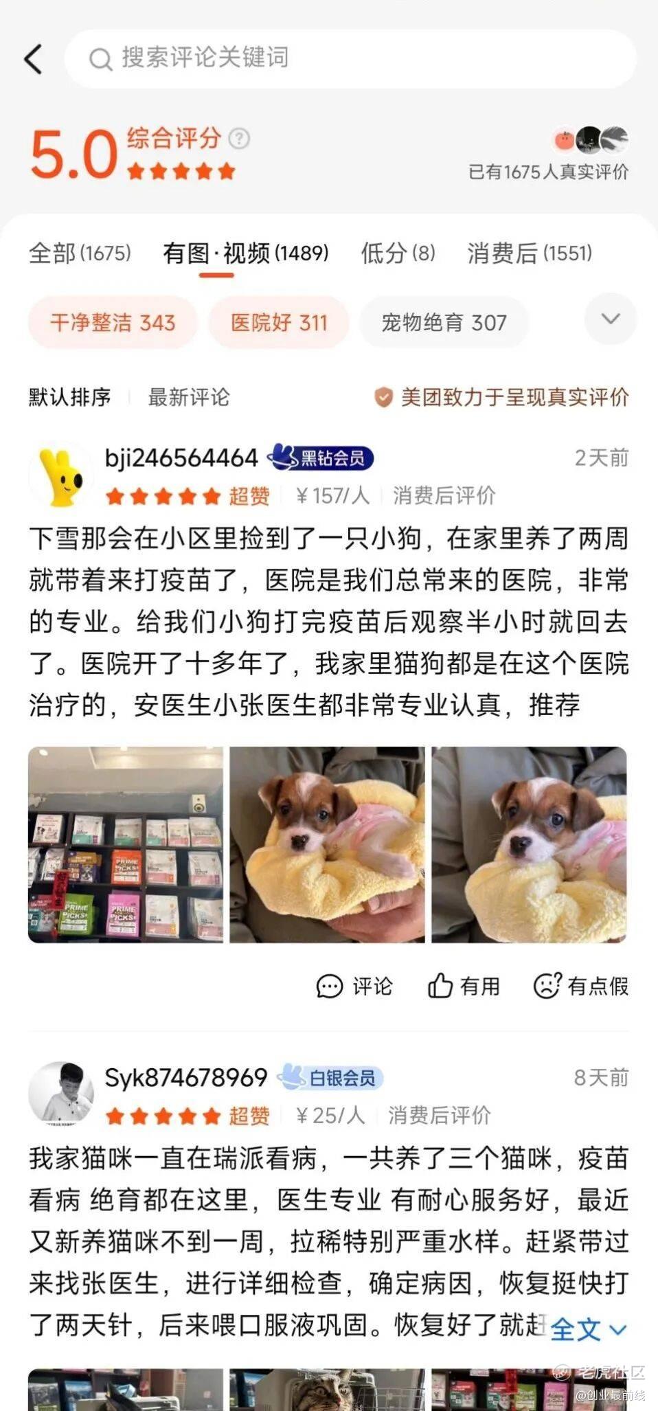 而且宠物医疗不像为人类治病,总有些公立医院有口皆碑,为宠物治病,更像在搜寻一种附近的消费服务,消费者有需求往往会看相关平台App上的评价和项目价格来选择医院就医。