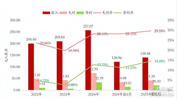 收入分别约为人民币200.40亿、209.84亿、257.07亿、120.94亿、139.44亿,2025年前6月同比+15.30%;