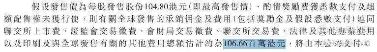 然后这个票招股书上按发售价104.80港元计算,公开的上市所有开支总额约为1.07亿 港元,募资额约48.00亿港元,占比约2.22%,开支相比募资额算是很少了。