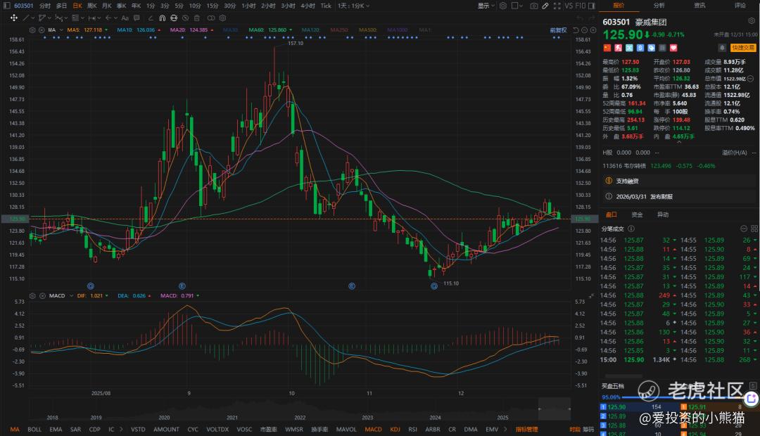 豪威集团H股较A股当前收盘价(125.9元)折价约25.2%,不存在溢价,反而是明显折价,按2026年1月5日实时汇率1港元=0.8978人民币,H股上限价折合人民币:104.8港元 × 0.8978 ≈ 94.09元,折价率计算:(94.09-125.9) ÷ 125.9 × 100% ≈ -25.2%。