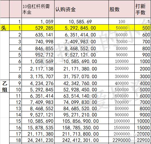 乙头需要认购资金530万,乙组的各档融资所需要的本金还有融资金额对应如下表: