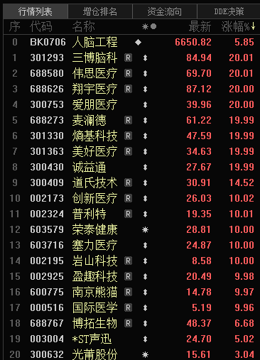 这里,姑且从这两天20com涨停的人脑工程概念股中,看看哪些大资金早已提前潜入。