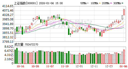 2026年元旦过后,A股喜迎开门红,大盘连收两根大阳线。上证指数在1月5日重新站上4000点大关后,今日再接再厉,创2015年7月以来的逾十年新高。