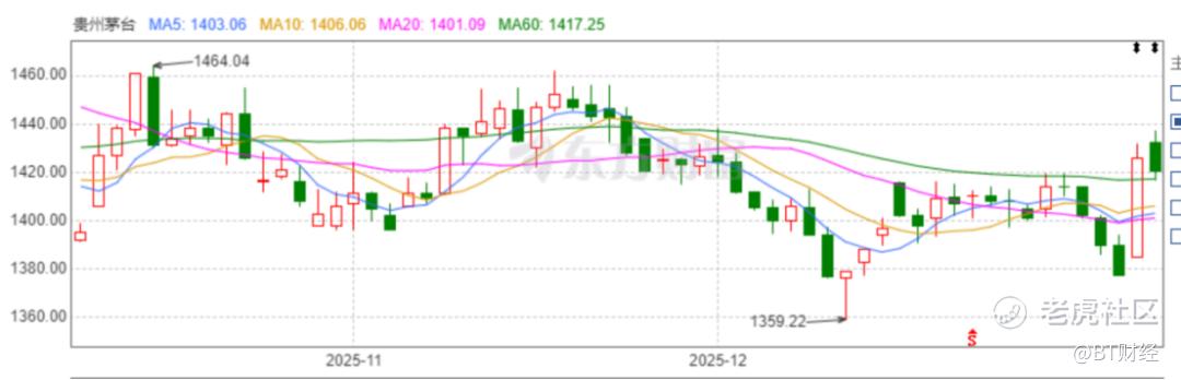 回顾2025年,茅台股价坐上了过山车,年初开盘价1472.44元,3月17日涨至1605.43元,涨幅9%。随后茅台股价开始一路下滑,6月16日跌至1349.62元,12月31日收盘价为1377.18元,年内茅台股价不涨反跌了6.5%,这在茅台身上并不常见。截至2025年12月31日,茅台最新市值为1.725万亿元。相比高点的3.02万亿元,已经蒸发了1.3万亿元。但在飞天茅台上线i茅台之后,新年第一个交易日,茅台股价大涨,1月5日茅台收盘价1426元,涨幅约3.54%,单日市值增长610亿元。