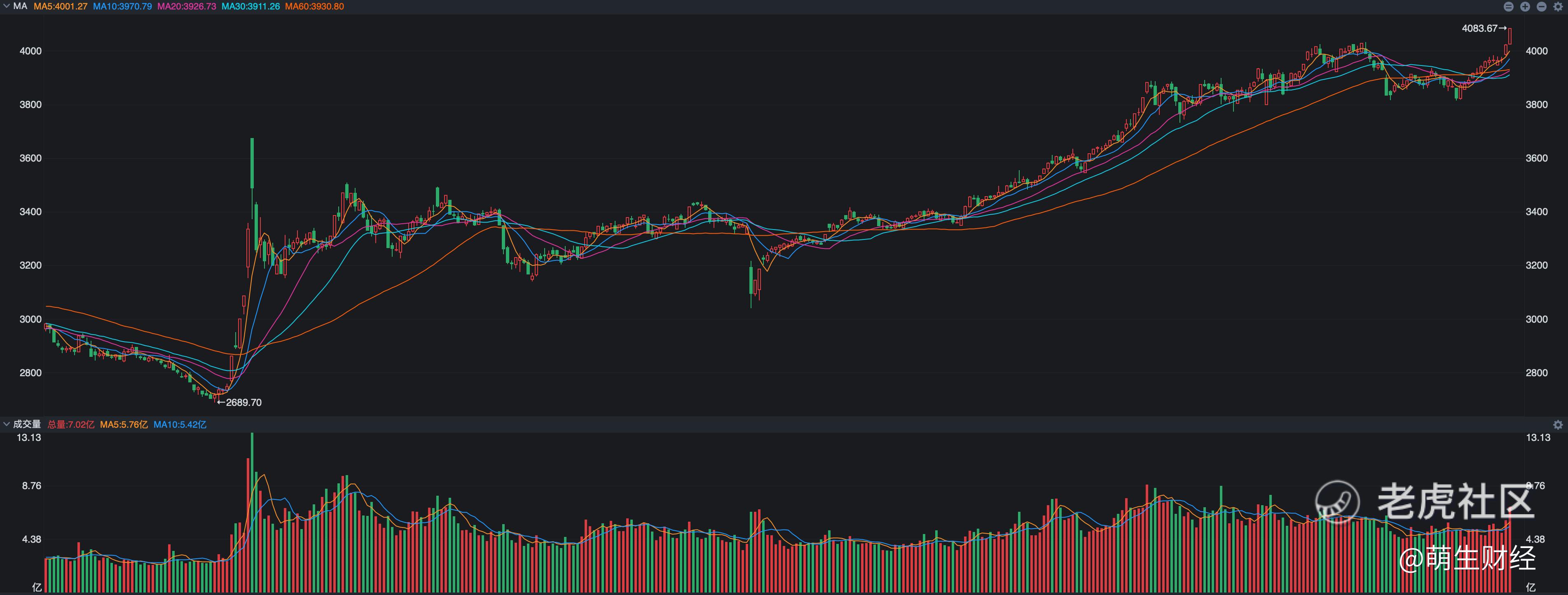 但是从过去两天的成交金额看,周一2.5万亿元、周二的话直接到了2.8万亿元,这是一个非常积极的信号,一方面说明4000点之上的确是有资金进场了,另一方面肯定是有利好预期,在这两方面的支撑下指数才直接到了4083点。
