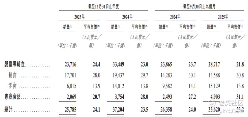 值得注意的是,由于产品组合中不断新增了单价相对较低的零食类产品,以及产品结构持续调整,2023年至2025年前9个月,爷爷的农场婴童零辅食的平均售价从24.4元/个下降至21.8元/个,呈逐步下降趋势。