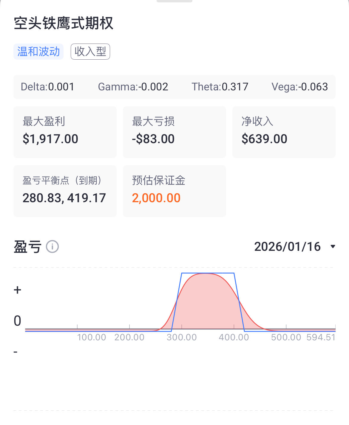 盈利条件 | 股价到期时落在 280.83–419.17美元 区间 |