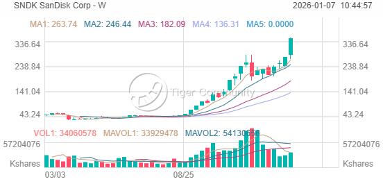 进入 1 月仅数日,Sandisk 再次领跑标普 500 指数,年初至今涨幅超 40%。