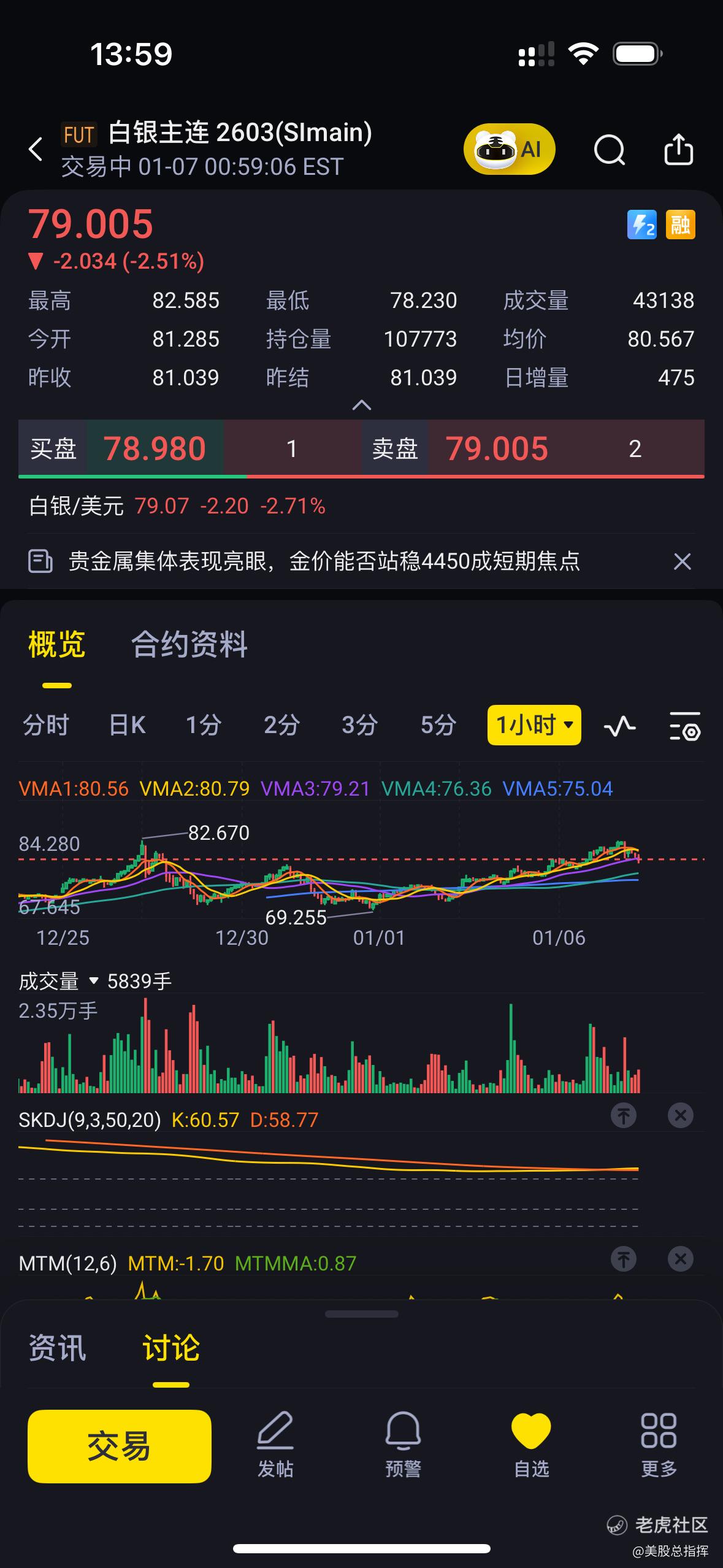 $白银主连 2603(SImain)$ 白银始终没破前高,附近点位赌空的朋友们这一波赚到了,给我们的启发就是以前高位置附近做空,把前高设为止损点,很小的损失博一个大的盈利 盈亏比或许可以达到10:1 下次有机会一定要尝试一下!持续关注$铂金2604(PL2604)$ $黄金主连 2602(GCmain)$ $微型NQ100指数2603(MNQ2603)$ $WTI原油主连 2602(CLmain)$