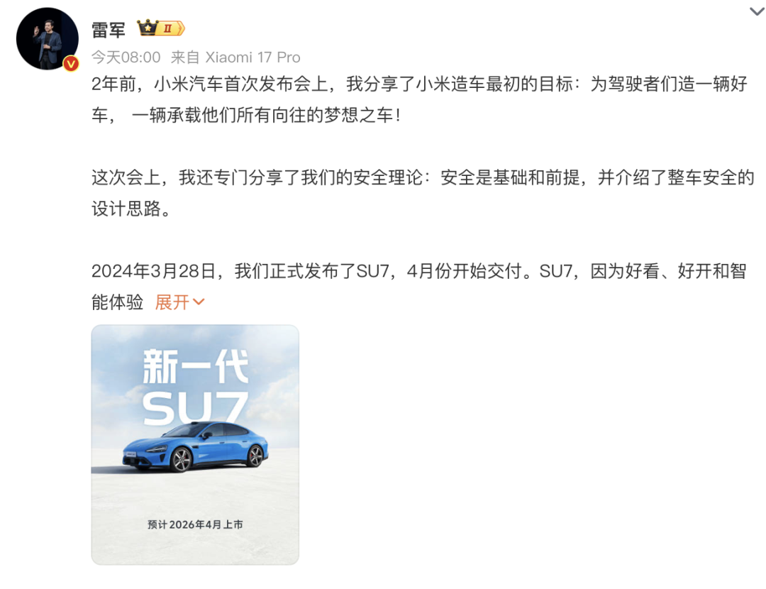 随后,雷军雷军连续多条微博澄清错误解读,重申“小米汽车安全是基础、安全是前提”的理念公开反击误解并以品牌理念主动澄清的方式。