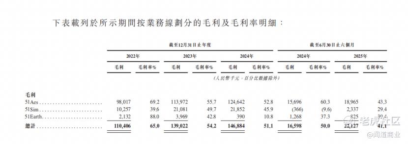 核心主业51Aes(数字孪生平台)毛利率大幅下滑,是造成整体毛利下滑的重要原因。资料显示,51Aes该部业务营收长期占公司全部营收的80%。2025年上半年,51Aes业务毛利率降至43.3%,同比下降了17个百分点。而过去三年,该部毛利率依次为69.2%、55.7%以及52.8%。