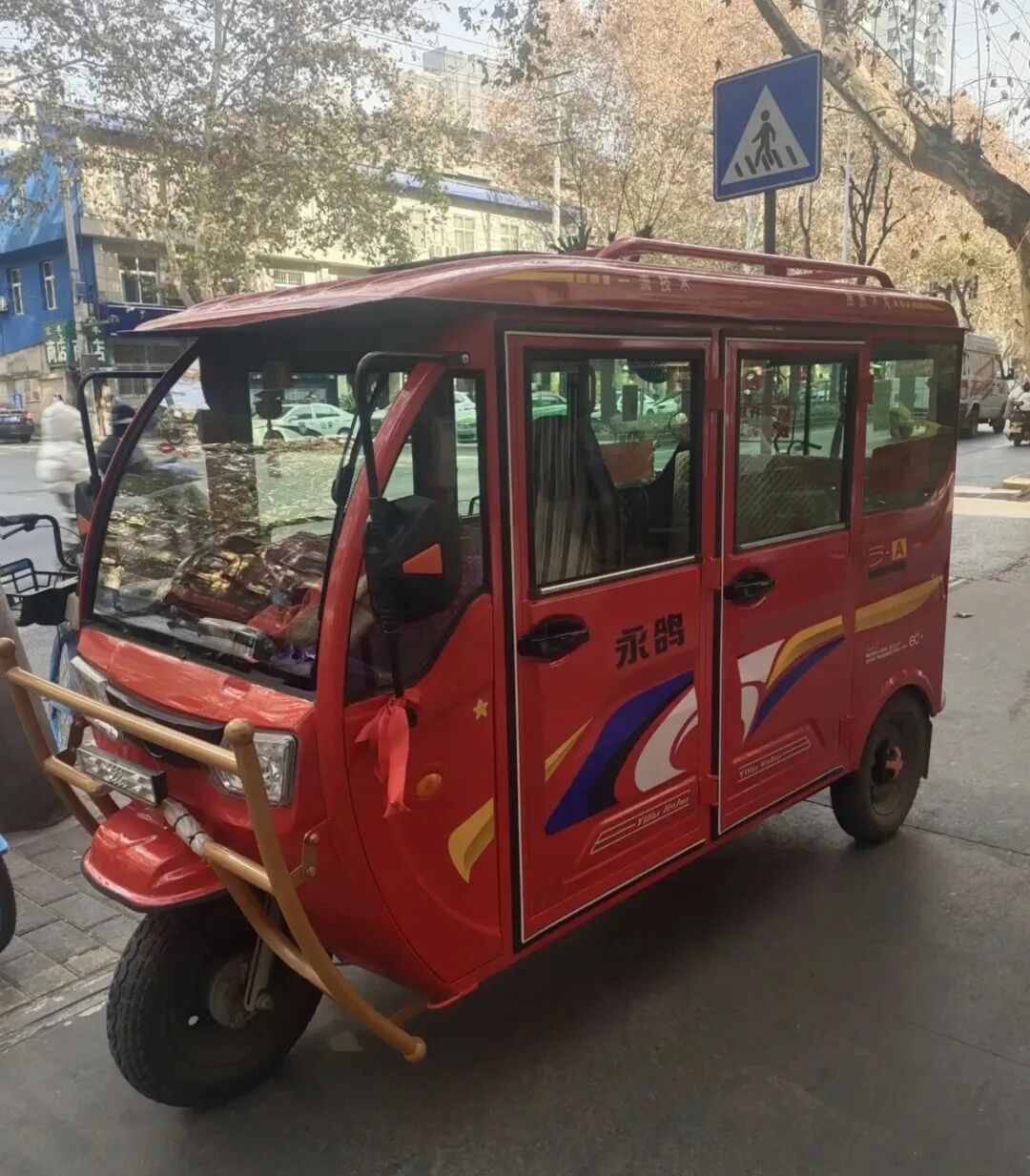 冬天的话还是有点冷,感觉这大冬天的还是不如国内的 “ 三蹦子 ” 配置高。