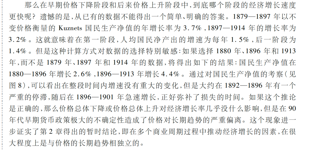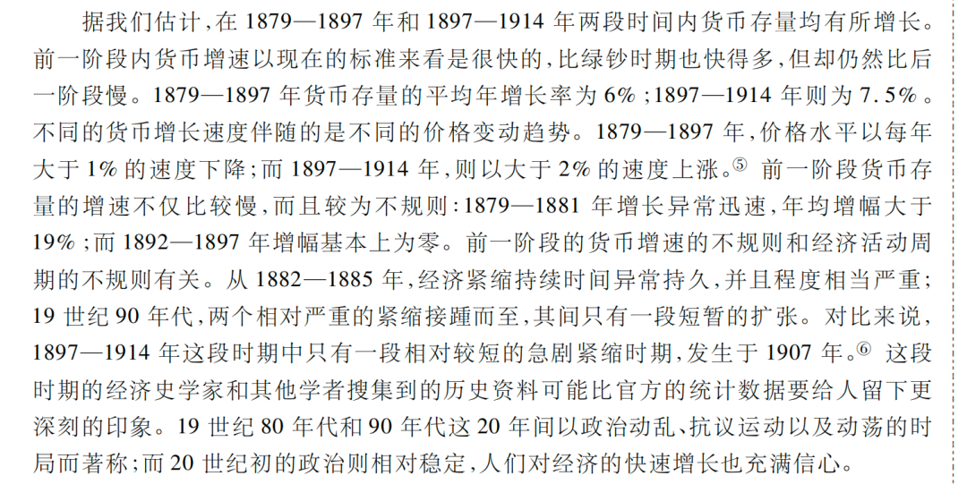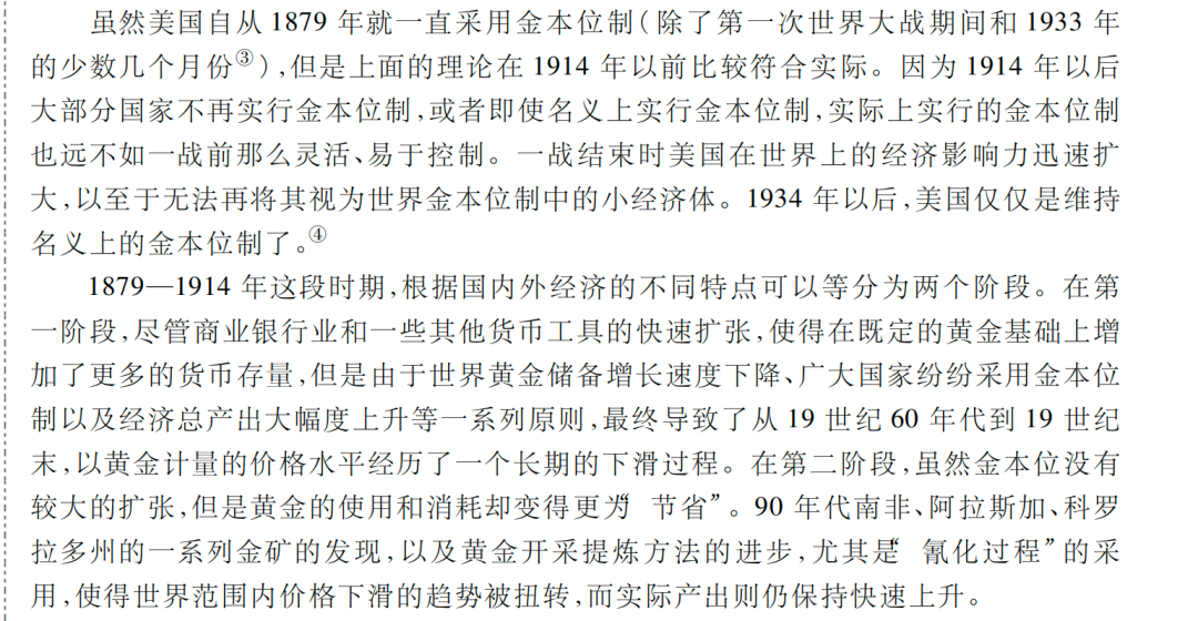 以上的两段表述,主要是描述,1879-1914,可以分为两个阶段,第一阶段,产出增加更多,价格水平回落;第二个阶段,黄金产出增加相对多,使用效率高,价格水平攀升。