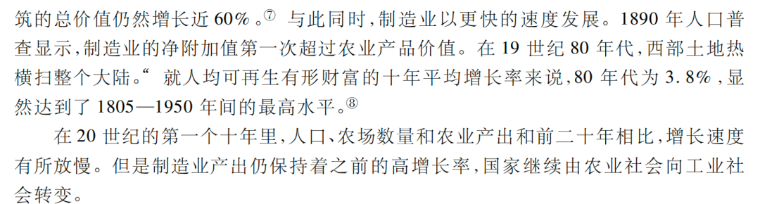 下面这段描述,很有意思的,19世纪20年代,美国人口高增长,铁路高增长,农场高增长,农业高增长。