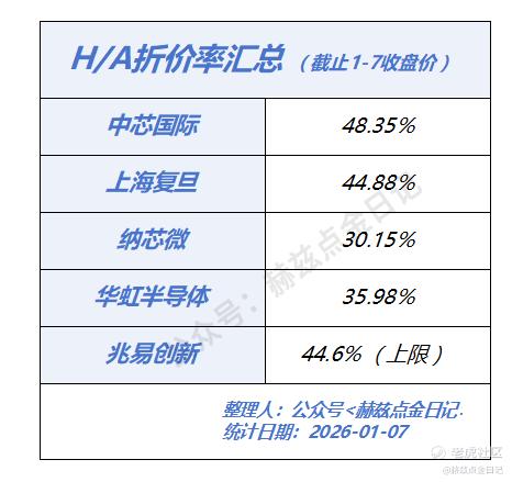 连续涨了三天,今天大涨4.67%,主要得益于存储芯片板块大涨,H/A折价约 44.6%~ 54.86% ,折价继续扩大。同时,也很大概率是上限定价,就按44.60%折价率来看吧,有一定的水位,水位不多;就怕截止后关门打狗罢了,想太多没用吗,烘托到这里了,看个人选择了。