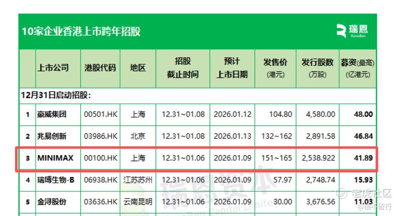 内地「AI六小虎」、人工智能公司稀宇科技(MiniMax)(00100.HK)于今日(1月6日)公开发售结束。